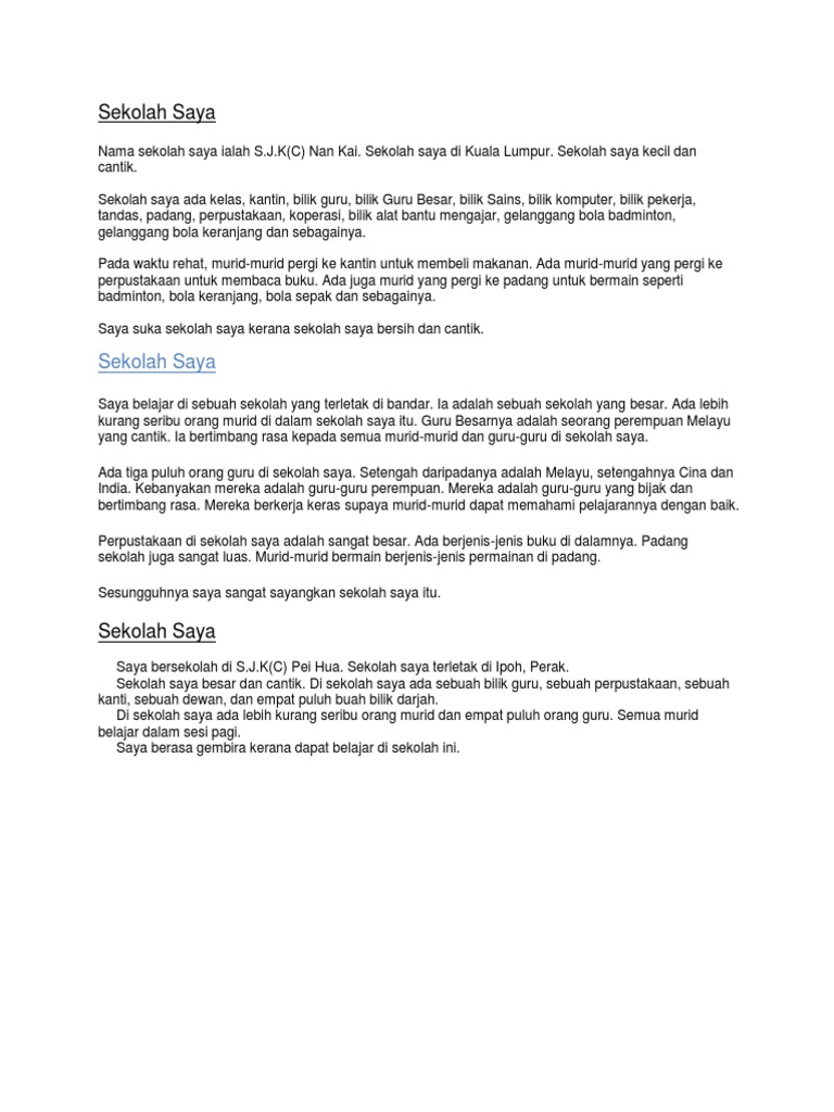 11 contoh karangan upsr terbaik bahasa melayu malay pendek jiran baru saya arab hari sukan sekolah soalan tahun 1 terengganu s tentang hobi dan artinya. Sekolah saya ada kelas kantin bilik guru bilik Guru Besar bilik Sains bilik komputer bilik pekerja tandas padang perpustakaan koperasi bilik alat bantu mengajar. Ceritakan tentang kebaikan sahabat-sahabat kamu.
