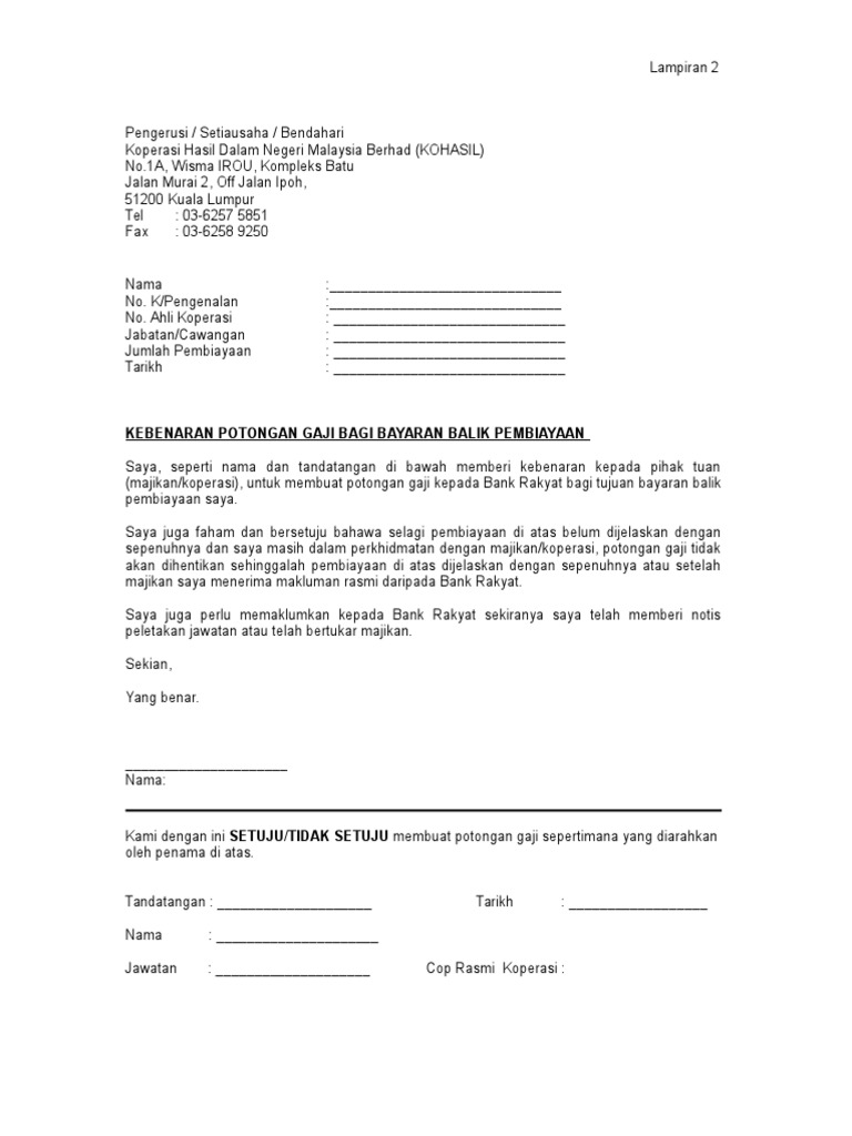 Surat Kebenaran Potong Gaji Bank Rakyat Pdf